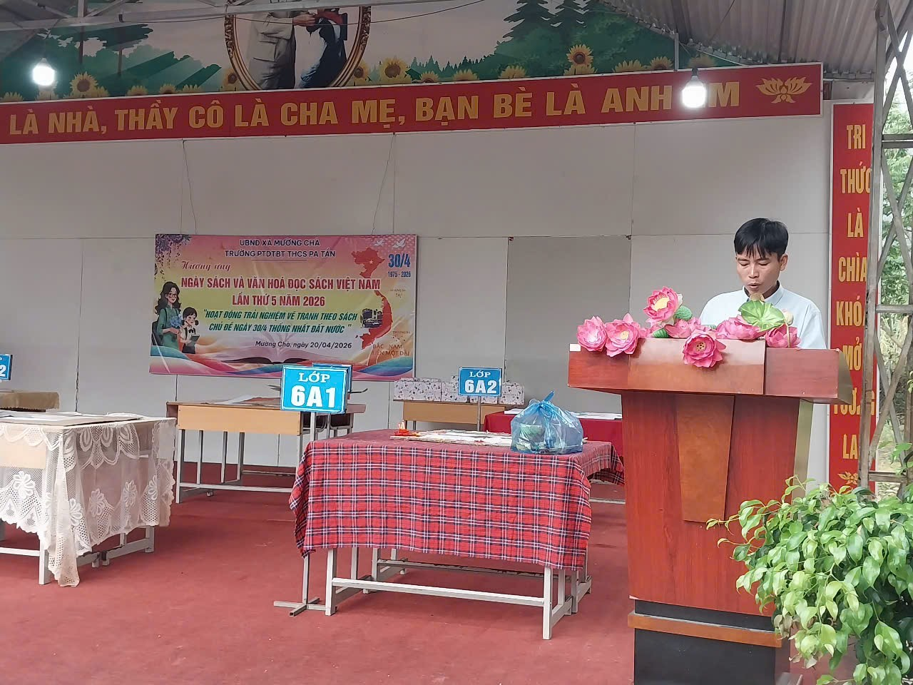 Mở đầu chương trình đ/c Phạm Thanh Hoàn – Bí thư chi bộ, hiệu trưởng nhà trường lên khai mạc ngày hội văn hóa đọc sách. Đây là dịp để các em hiểu hơn về ý nghĩa của việc đọc sách. “Mỗi em học sinh hãy chọn cho mình một quyển sách ý nghĩa phù hợp với bản thân có thể là sách giấy, sách số”.